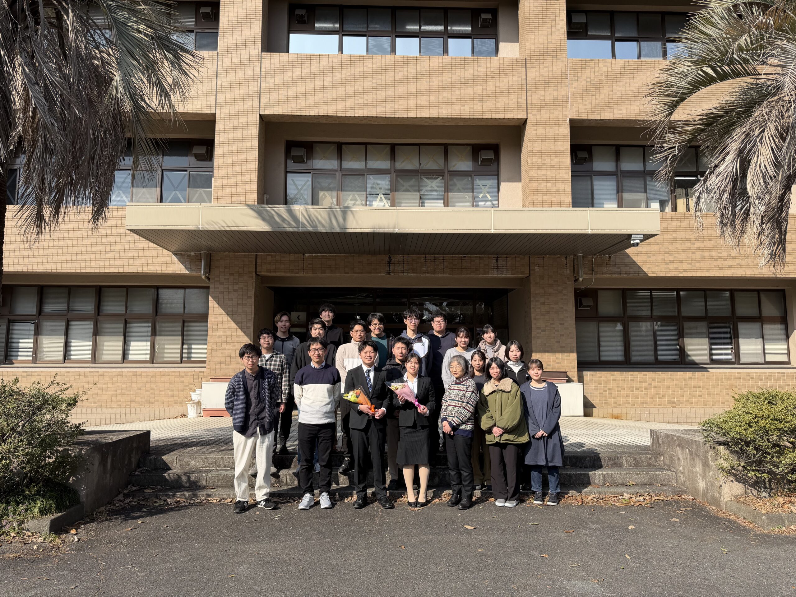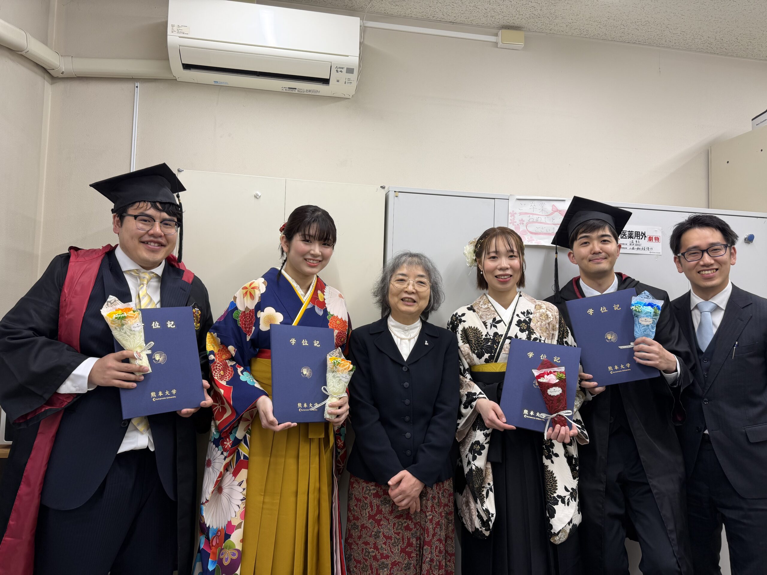 - 2026年3月25日 手島くん(博士課程)、本田くん(博士後期課程)、原田くん、松木さん(博士前期課程)、東内原くん(薬学科)、金澤さん、坂梨さん(創薬・生命薬科学科)が修了・卒業しました。