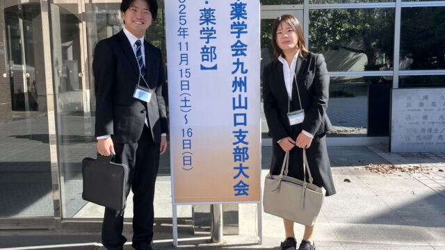 - 2025年11月17日 第42回日本薬学会九州山口支部大会(11月15, 16日)において、修士2年の原田くんと松木さんが研究成果を発表しました。