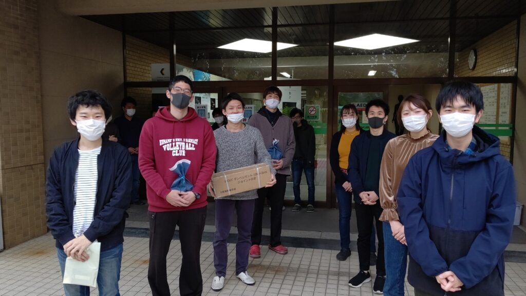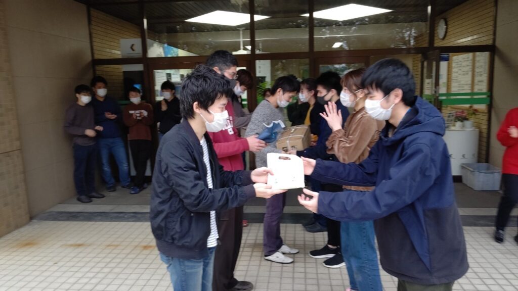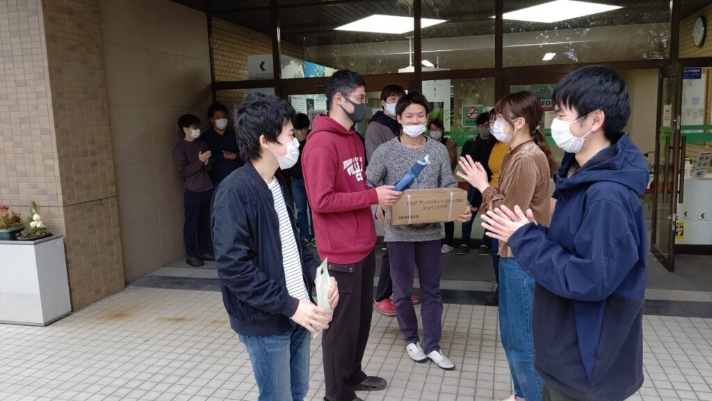 2021年3月4日 修了・卒業生(小栁くん、後藤くん、牧くん、本田くん)に記念品を贈呈しました。