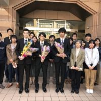佐々木君・貞廣君(修士2年)、築地君・武井君・来住君(6年)、石井君・甲斐さん(4年)おめでとうございます。