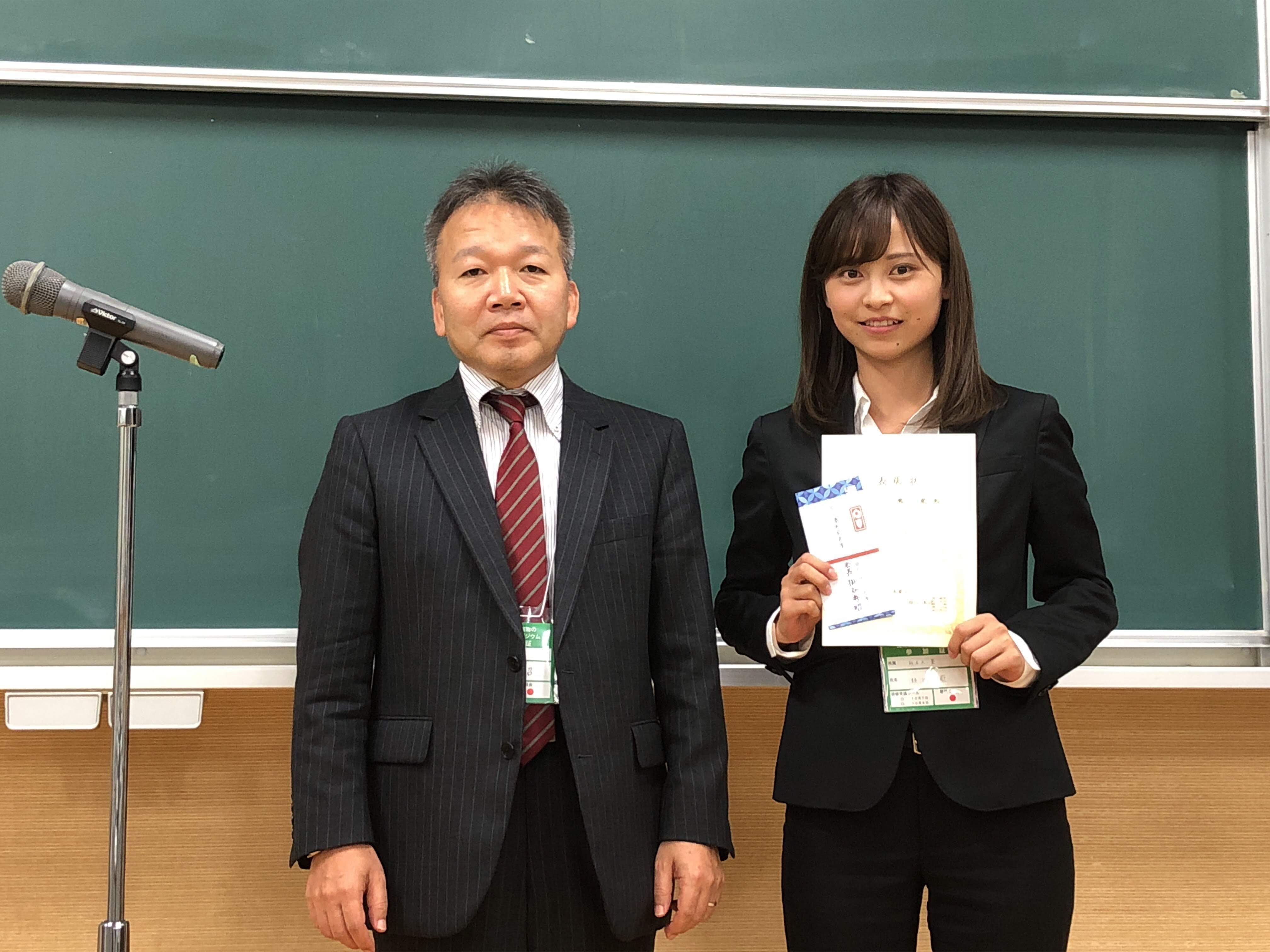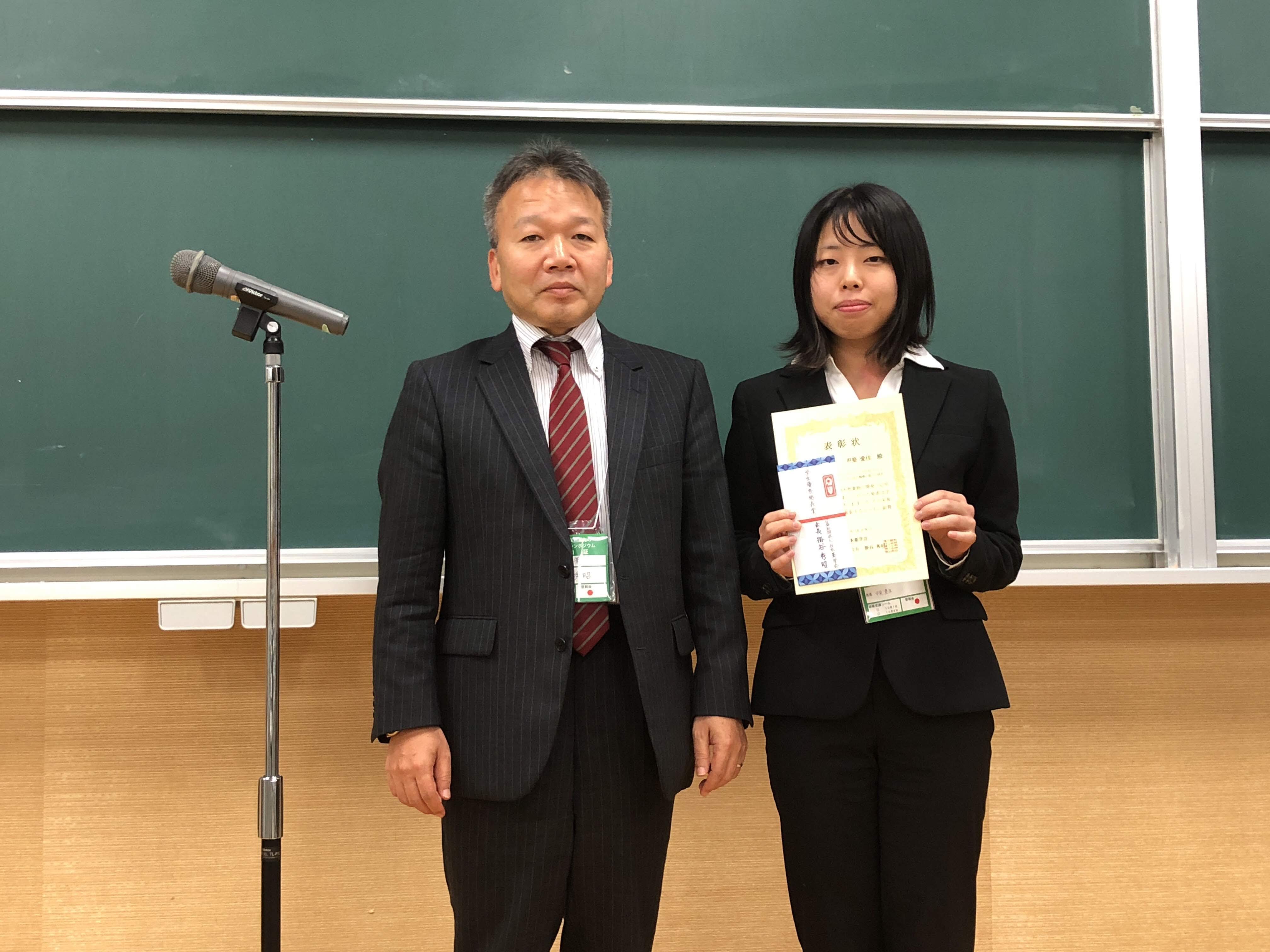 「第22回天然薬物の開発と応用シンポジウム」で、加藤博士(助教)、人羅博士(助教)、甲斐さん(M1)、瀬治山さん(4年)、小倉君(4年)、牧君(4年)が研究成果を発表しました。甲斐さん(口頭発表)と瀬治山さん(ポスター発表)が優秀発表賞を受賞しました。