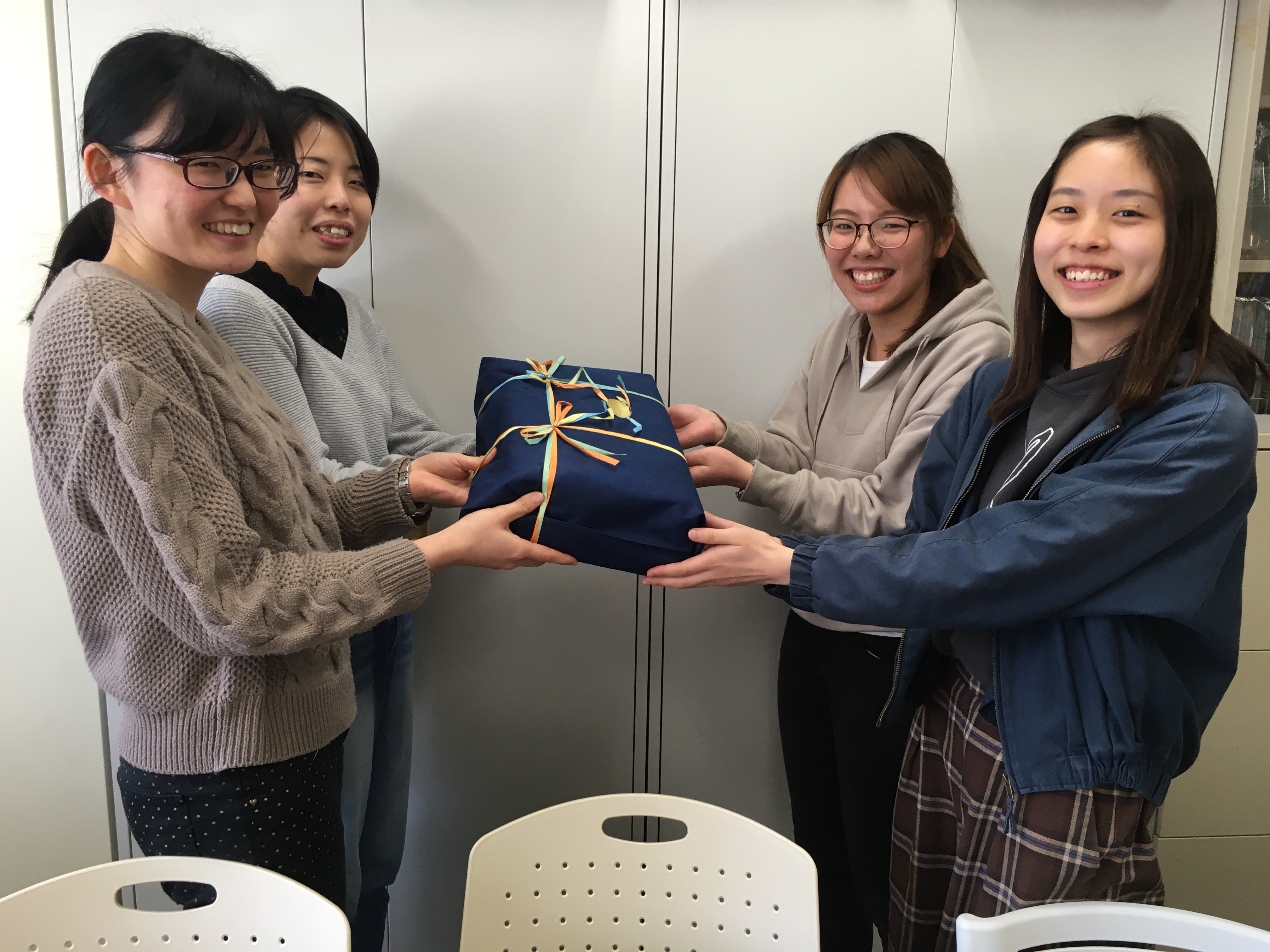 10年間 文部科研技術支援者として勤務されていた前田さんの最後の勤務日となりました。