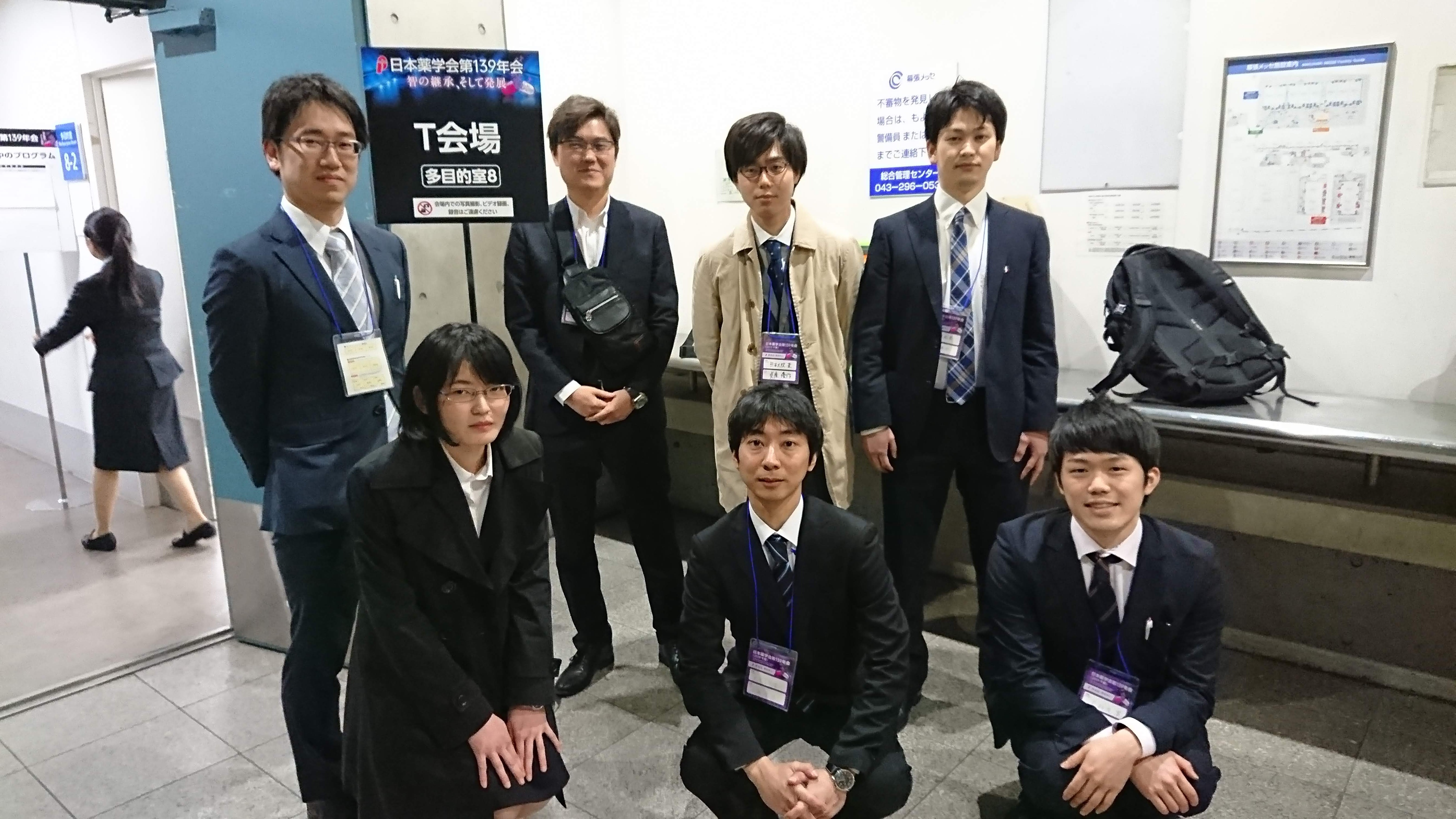 村上君(3年)、小縣君、前田さん(5年)、貞廣君(文部科研技術支援者)、江口君(特別研究員)が、3月20-23日に千葉で開催された日本薬学会第139年会で研究成果を発表しました。