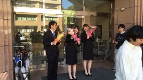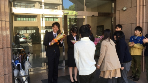 薬学科6年の井上くん、杉本さん、瀬邊さんが卒論発表を行いました。