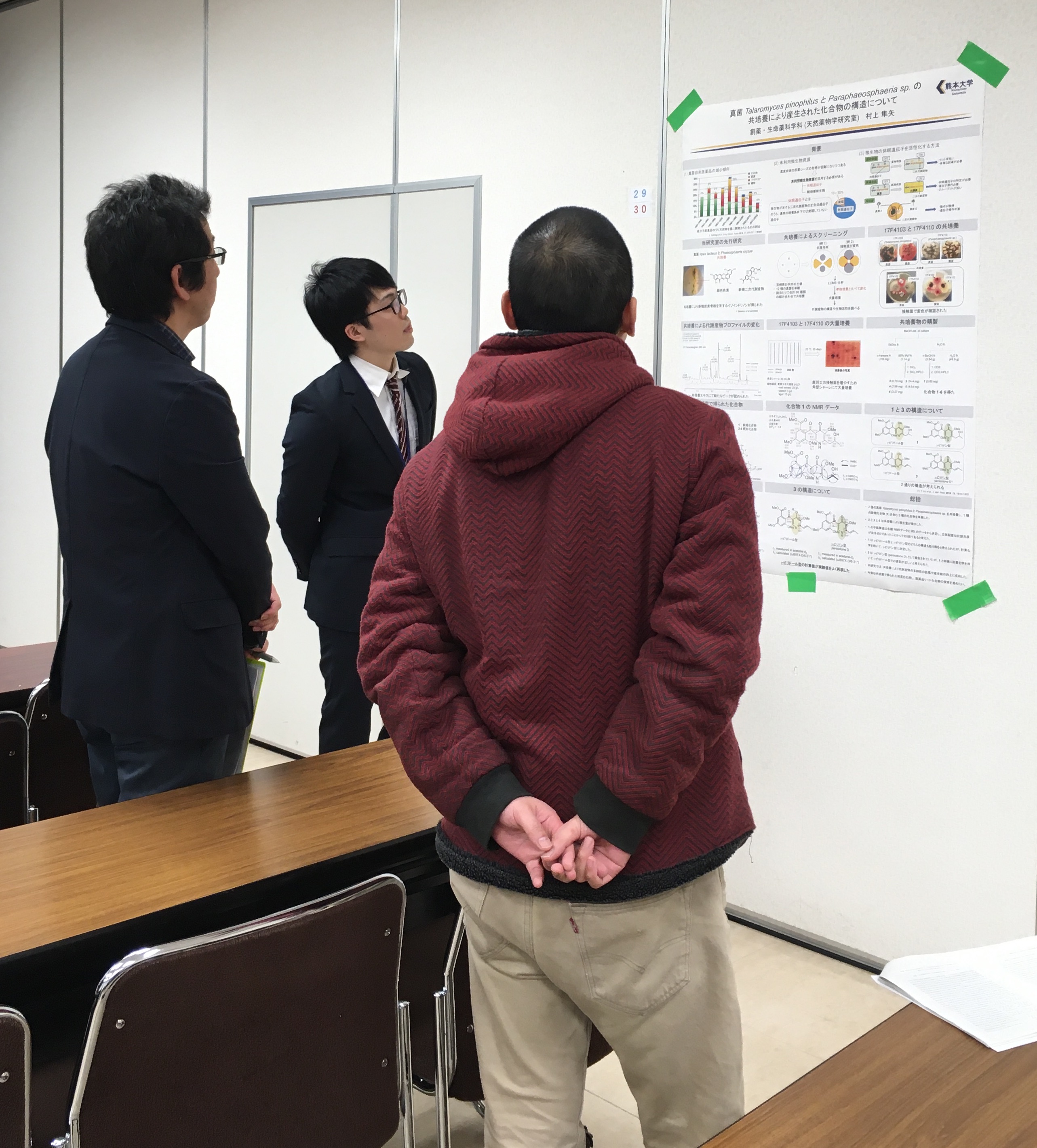 修了・卒業生と退職者に記念品を贈呈しました。研究室にタオルをいただきました。